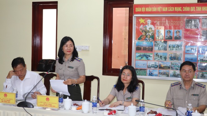 Đại diện lãnh đạo Chi cục Thi hành án dân sự huyện Thống Nhất báo cáo kết quả thực hiện chính sách, pháp luật trong công tác thi hành án dân sự.