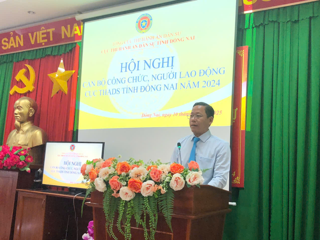 Có thể nói năm 2024, áp lực cho ngành THADS tỉnh Đồng Nai tiếp tục gia tăng khi lượng việc và tiền phải thi hành tăng cao, nhiều vụ việc khó, phức tạp, án thuộc diện BCĐ Phòng chống tham nhũng tiêu cực Trung ương theo dõi, chỉ đạo, nhân sự thiếu. Nhưng được sự quan tâm, lãnh đạo, chỉ đạo của Bộ Tư pháp, Tổng cục THADS, Tỉnh ủy, HĐND, UBND tỉnh Đồng Nai cùng với sự lãnh đạo, điều hành của tập thể lãnh đạo Cục đã phát huy sự đoàn kết thống nhất, cùng những giải pháp quyết liệt, nỗ lực vượt qua khó khăn, thách thức, toàn ngành THADS tỉnh đã đạt được những kết quả vượt trội trên tất cả các mặt công tác, hoàn thành vượt chỉ tiêu cấp trên giao. So với bình quân toàn quốc, ngành THADS tỉnh Đồng Nai xếp thứ 3/63 về việc và 08/63 về tiền. Kỷ cương, kỷ luật hành chính được tăng cường, giữ vững ổn định, đoàn kết nội bộ. Các mặt công tác được triển khai toàn diện, kịp thời theo yêu cầu của ngành và địa phương.