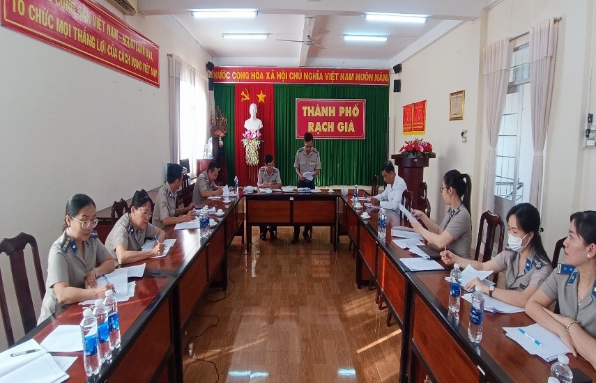 CHI BỘ CHI CỤC THI HÀNH ÁN THÀNH PHỐ RẠCH GIÁ TỔ CHỨC KIỂM ĐIỂM, ĐÁNH GIÁ, XẾP LOẠI ĐẢNG VIÊN NĂM 2023