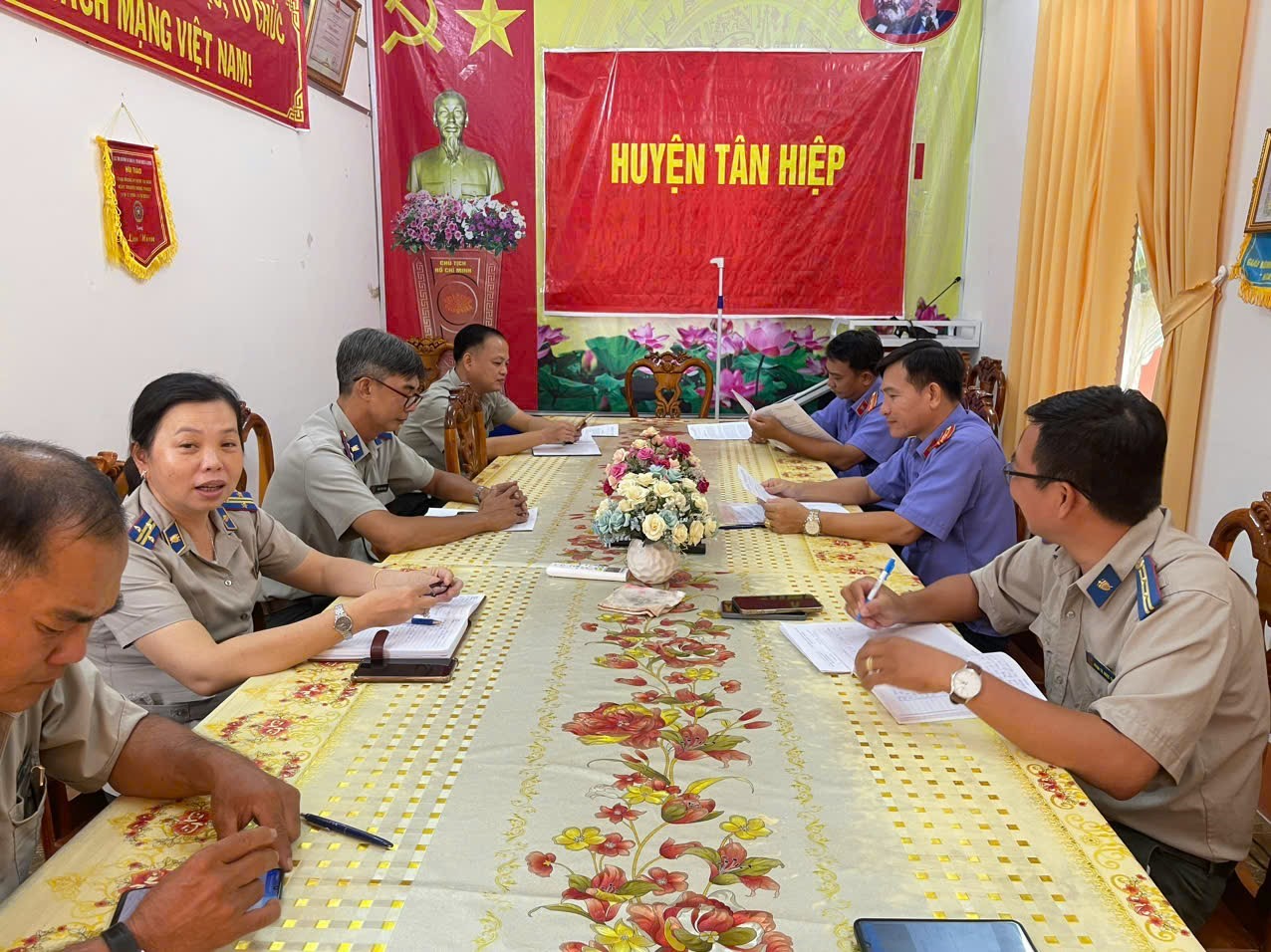 Thực hiện Quyết định số 316/QĐ-VKS ngày 25 tháng 7 năm 2024 và Kế số 317/KH-VKS ngày 25 tháng 7 năm 2024 của Viện trưởng Viện Kiểm sát nhân dân (VKSND) huyện Tân Hiệp. VKSND huyện Tân Hiệp tiến hành trực tiếp kiểm sát việc tuân theo pháp luật trong tổ chức thi hành án dân sự (THADS) đối với Chi cục THADS huyện Tân Hiệp, trong thời hạn 07 ngày làm việc từ ngày 12/8/2024 đến ngày 20/8/2024.
