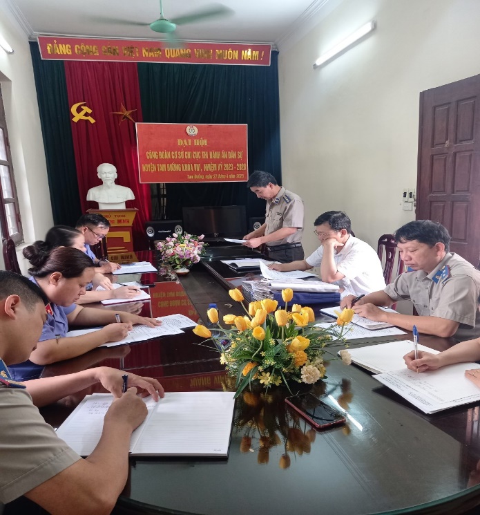 Thay mặt Chi cục THADS huyện Tam Đường, đồng chí Nguyễn Văn Thưởng, Chi cục trưởng đã báo cáo đoàn công tác kết quả công tác xác minh, phân loại án, việc thực hiện các quy định của pháp luật về phân loại án chưa có điều kiện thi hành theo quy định từ ngày 01/10/2022 đến 20/5/2023. Sau khi nghe báo cáo của đơn vị, Đoàn kiểm sát đã trực tiếp kiểm sát các hồ sơ thi hành án chưa có điều kiện thi hành và sổ theo dõi án chưa có điều kiện thi hành của đơn vị.