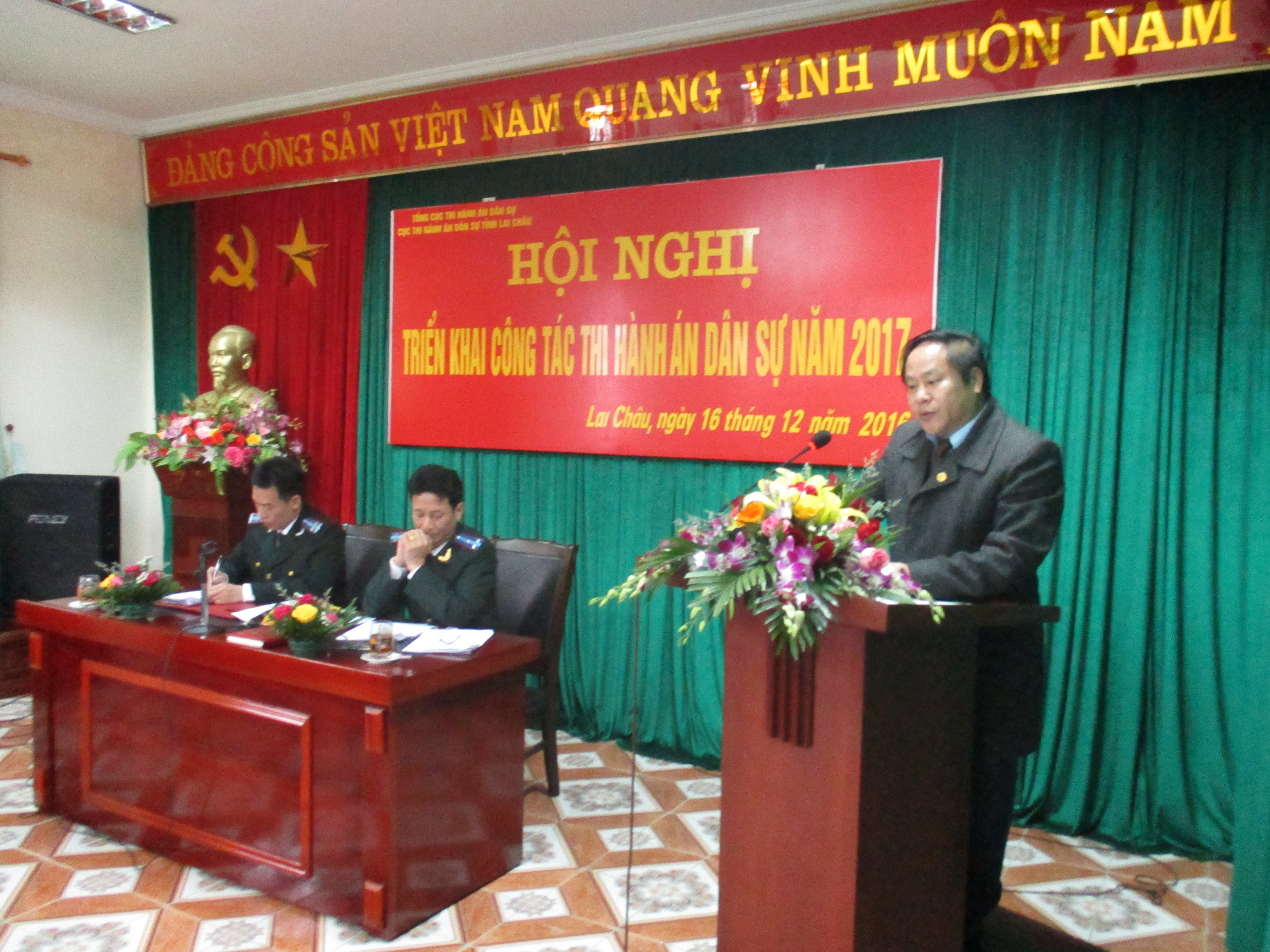 Tiếp thu ý kiến chỉ đạo của đồng chí Tống Thanh Hải - Ủy viên Ban Thường vụ Tỉnh ủy, Phó chủ tịch Ủy ban nhân dân tỉnh, đồng chí Hứa Đức Hạnh – Cục trưởng Cục thi hành án dân sự đã thay mặt công chức, người lao động ngành Thi hành án dân sự tỉnh Lai Châu cảm ơn sự quan tâm, lãnh đạo, chỉ đạo của Tỉnh ủy, Hội đồng nhân dân, Ủy ban nhân dân tỉnh đối với công tác THADS, quyết tâm đưa công tác THADS năm 2017 đi vào trọng tâm, khắc phục những tồn tại, hạn chế, khó khăn để hoàn thành vượt mức các chỉ tiêu, nhiệm vụ được giao năm 2017, thực hiện thắng lợi nhiệm vụ chính trị của ngành, của địa phương.