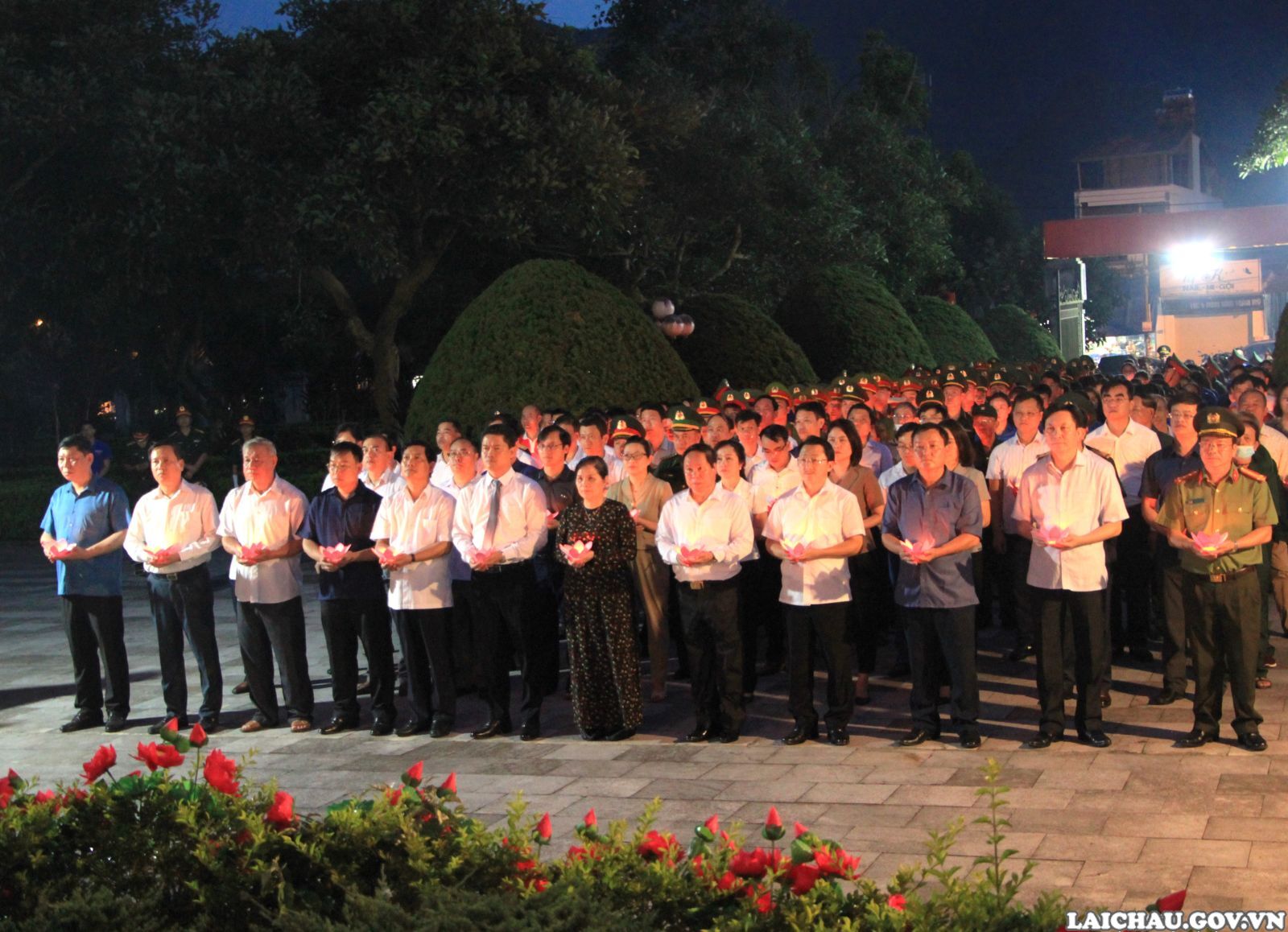 Trong không khí trang nghiêm của buổi Lễ, các đại biểu đã dâng vòng hoa của Tỉnh ủy, HĐND, UBND, UBMTTQ Việt Nam tỉnh, dâng hương tại Đài tưởng niệm các Anh hùng liệt sĩ, bày tỏ lòng tiếc thương vô hạn và tri ân những hy sinh mất mát của hơn 600 Anh hùng liệt sĩ - Những người con ưu tú của Lai Châu và các địa phương khác trong cả nước đang yên nghỉ tại đây. Các anh đã không tiếc máu xương, chiến đấu, hy sinh vì độc lập, tự do của dân tộc, vì sự trường tồn của đất nước, vì sự phát triển của Lai Châu.