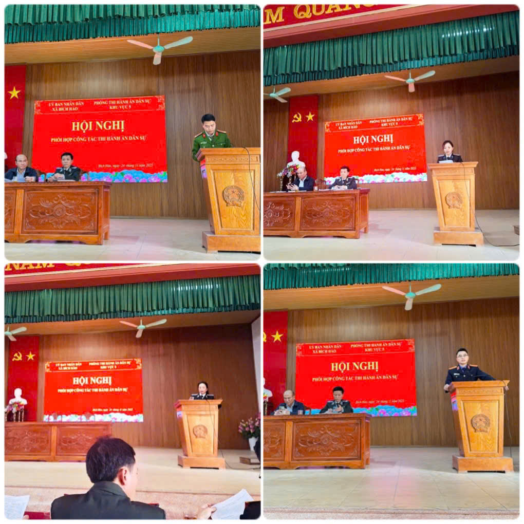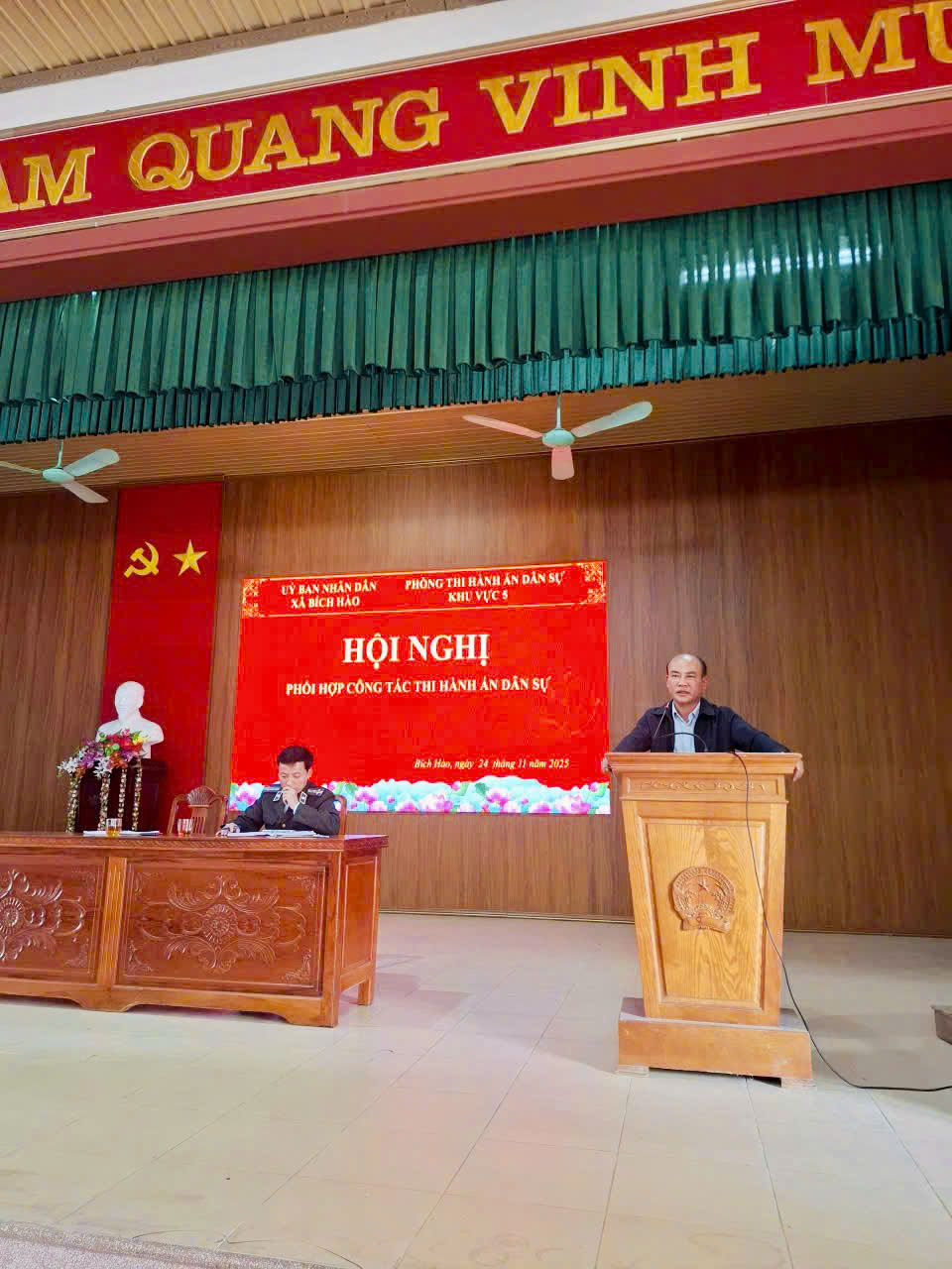“Hội nghị phối hợp công tác thi hành án dân sự” tại UBND xã Bích Hào, tỉnh Nghệ An.