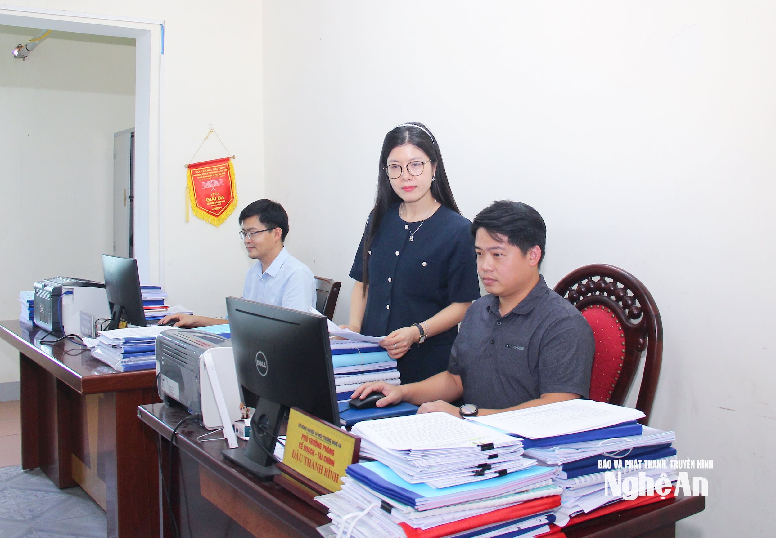 Cán bộ phòng chuyên môn Sở Nông nghiệp và Môi trường Nghệ An giải quyết công việc. Ảnh: Mai Hoa