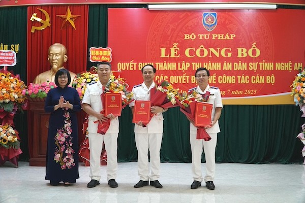 đó, ông Phm Quc Nam, Cc trưởng Cc THADS tnh Ngh An được b nhim Trưởng THADS tnh Ngh An. Các ông Trn Công Hòa, Vi Văn Nhung, Phó Cc trưởng Cc THADS tnh Ngh An được b nhim Phó Trưởng THADS tnh. Các quyết định có hiu lc t ngày 1/7/2025, thi hn 5 năm.