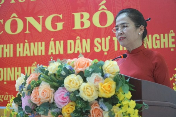 đơn v ngành dc thc hin nhim v ti địa phương, THADS tnh Ngh An đã vượt qua mi khó khăn, 6 năm liên tc gn đây được B Tư pháp xếp loi hoàn thành xut sc nhim v. Ngoài công vic chuyên môn, ngành THADS tnh cũng hoàn thành tt các nhim v chính tr, đặc bit đã đào to, bi dưỡng được nhiu cán b cho tnh. Đồng chí Võ Th Minh Sinh mt ln na biu dương, đánh giá cao s đóng góp ca đội ngũ lãnh đạo, cán b, công chc, người lao động trong h thng THADS tnh, góp phn quan trng trong vic bo v pháp chế, gi vng an ninh chính tr, trt t an toàn xã hi, to nn tng quan trng thúc đẩy môi trường đầu tư kinh doanh, h tr phát trin kinh tế - xã hi ca tnh nhà. Bà cũng bày t s cm ơn đối vi các Chi cc THADS đã hoàn thành xut sc s mnh lch s và cùng bước trang s mi.