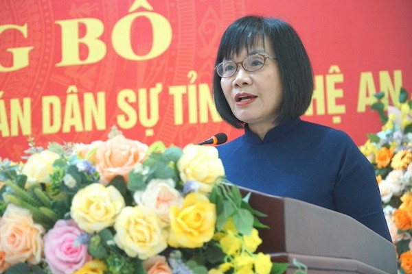 y viên Ban Thường v Đảng y, Th trưởng B Tư pháp Đặng Hoàng Oanh trao quyết định b nhim 3 v trí lãnh đạo THADS tnh Ngh An. nh: Tuyết Lan