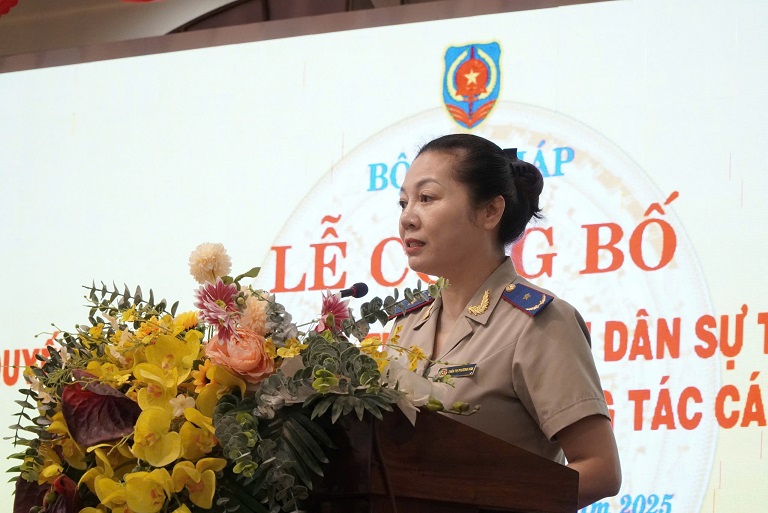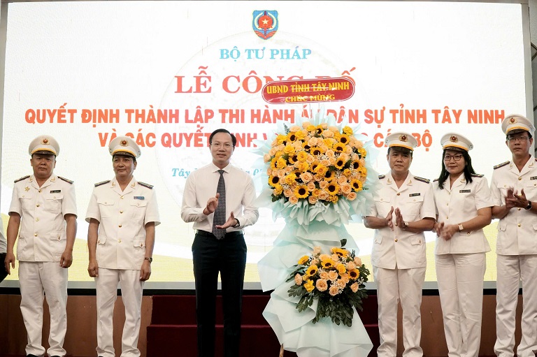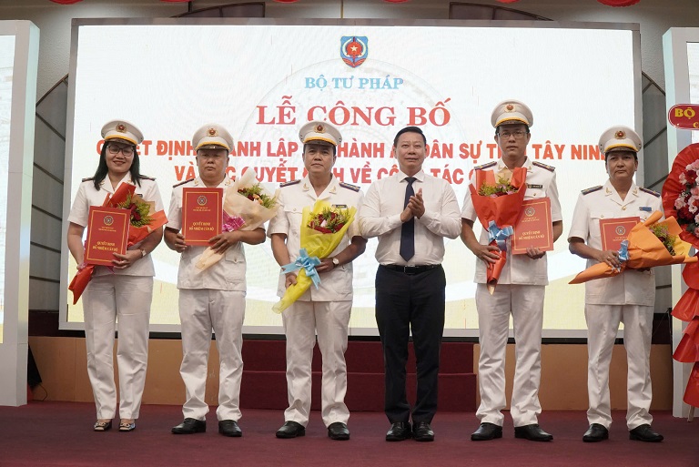 Tại buổi Lễ, bà Trần Thị Phương Hoa, Phó Cục trưởng Cục Quản lý Thi hành án dân sự đã công bố Quyết định của Bộ trưởng Bộ Tư pháp về việc thành lập Thi hành án dân sự tỉnh Tây Ninh và các Quyết định bổ nhiệm Trưởng, Phó trưởng Thi hành án dân sự tỉnh Tây Ninh.