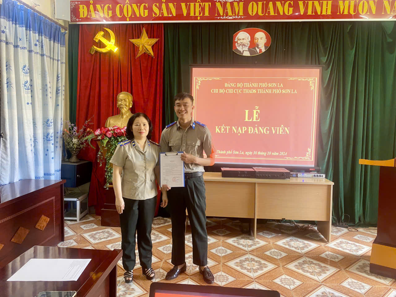 Chiều ngày 30/10/2024, Chi bộ Chi cục Thi hành án dân sự thành phố Sơn La đã trang trọng tổ chức buổi Lễ kết nạp Đảng viên đối với quần chúng ưu tú Lường Anh Quyết  – Nhân viên bảo vệ tại Chi cục Thi hành án dân sự  thành phố Sơn La. Tham dự và chỉ đạo buổi Lễ có đồng chí: Đỗ Hải Yến - Bí thư Chi bộ, Chi cục trưởng Chi cục Thi hành án dân sự thành phố Sơn La, cùng sự có mặt tham gia của toàn thể đảng viên Chi bộ Chi cục Thi hành án dân sự thành phố Sơn La.