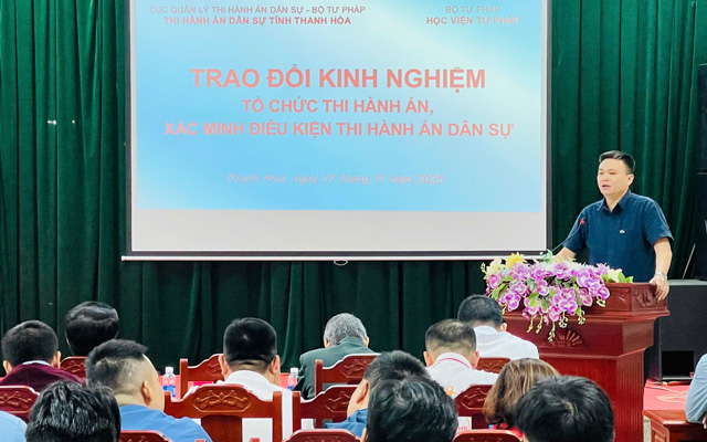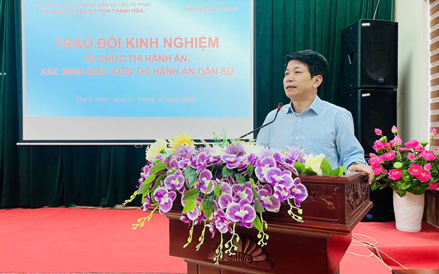 Tiếp đó, được sự phân công của Lãnh đạo THADS tỉnh, đồng chí Trưởng phòng Nghiệp vụ và tổ chức thi hành án đã chia sẻ một số kỹ năng, kinh nghiệm trong công tác tổ chức thi hành án, xác minh điều kiện thi hàn án, đặc biệt là kỹ năng xác minh điều kiện thi hành án đối với các vụ việc có tài sản đảm bảo là quyền sử dụng đất (một trong các loại vụ việc phức tạp, thực tiễn tổ chức thi hành án còn nhiều khó khăn, vướng mắc).