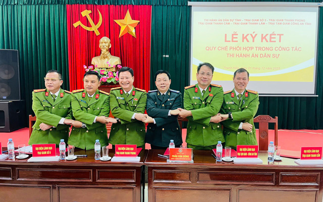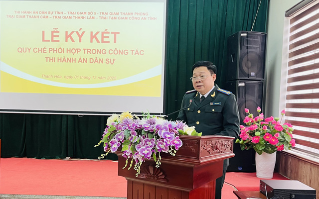 Ngày 01/12/2025, Thi hành án dân sự (THADS) tỉnh Thanh Hóa tổ chức Hội nghị ký kết Quy chế phối hợp giữa THADS tỉnh và các Trại giam, Trại Tạm giam trên địa bàn tỉnh để tiếp tục tăng cường trách nhiệm, năng lực tổ chức thực hiện, đảm bảo sự thống nhất và nâng cao chất lượng hiệu quả phối hợp công tác giữa các cơ quan, góp phần thực hiện thắng lợi chỉ tiêu, nhiệm vụ THADS.