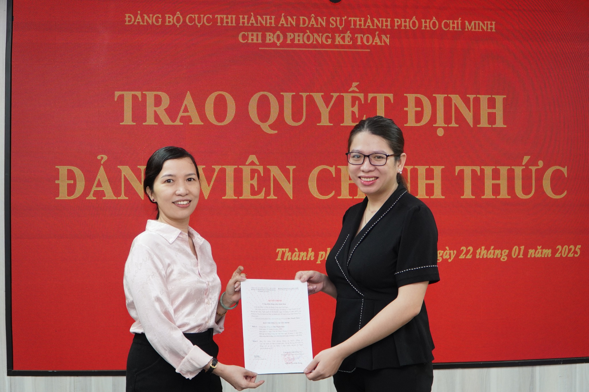Một lần nữa, xin chúc mừng đồng chí Bùi Thạch Thảo đã chính thức trở thành Đảng viên Đảng Cộng sản Việt Nam. Chúc Chi bộ Phòng Kế Toán tiếp tục phát huy tinh thần đoàn kết, giữ vững bản lĩnh chính trị và hoàn thành xuất sắc nhiệm vụ trong thời gian tới.