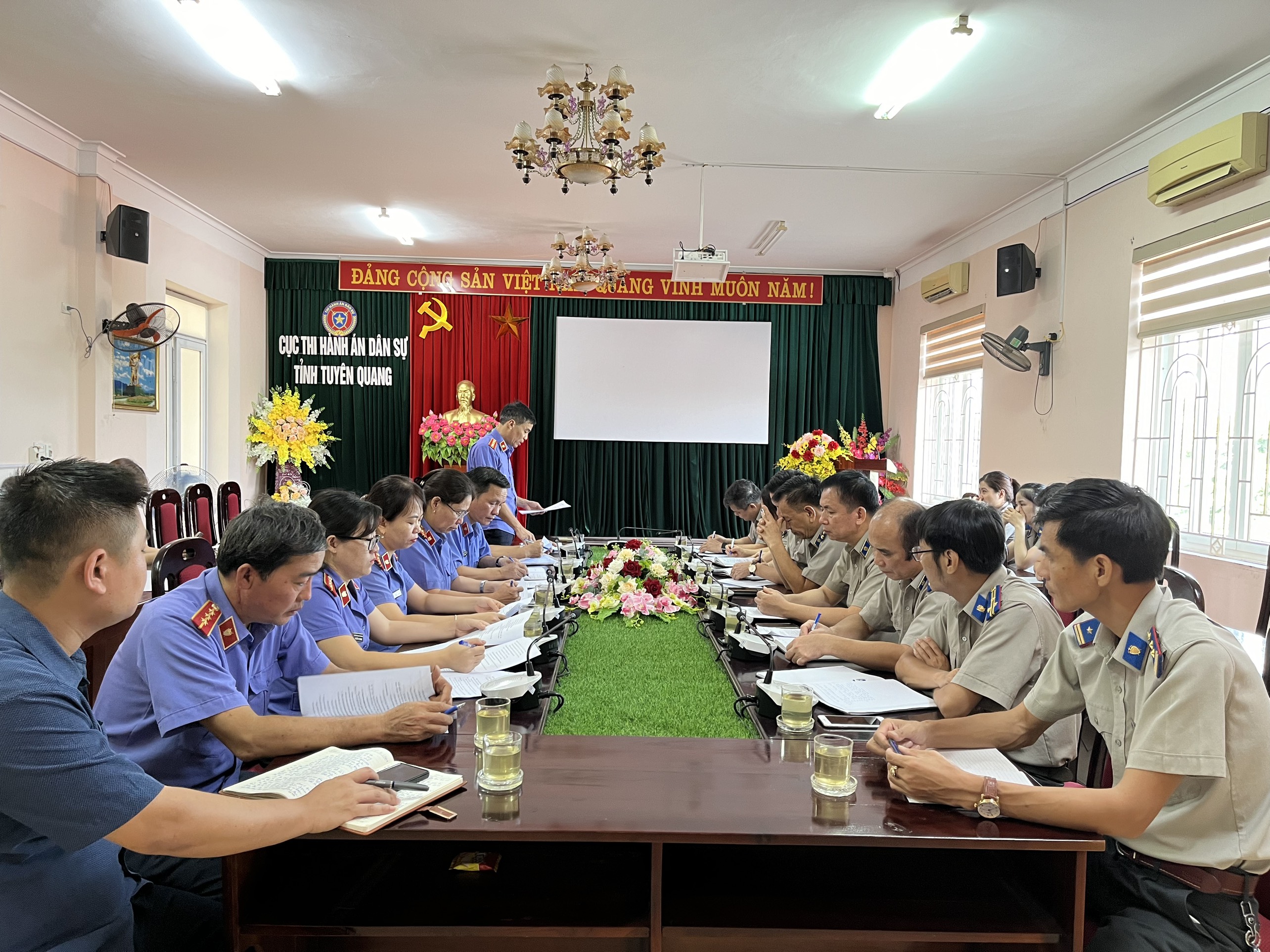 Thực hiện Quyết định số 1024/QĐ-VKS-P8 và Kế hoạch số 1025/KH-VKS-P8 ngày 28/6/2024 của Viện Kiểm sát nhân dân tỉnh Tuyên Quang về trực tiếp kiểm sát hoạt động thi hành án dân sự, sáng ngày 22/7/2024 tại Hội trường Cục Thi hành án dân sự tỉnh Tuyên Quang, Viện Kiểm sát nhân dân (VKSND) tỉnh Tuyên Quang đã tiến hành công bố Quyết định trực tiếp kiểm sát hoạt động thi hành án dân sự (THADS) đối với Cục THADS tỉnh Tuyên Quang.