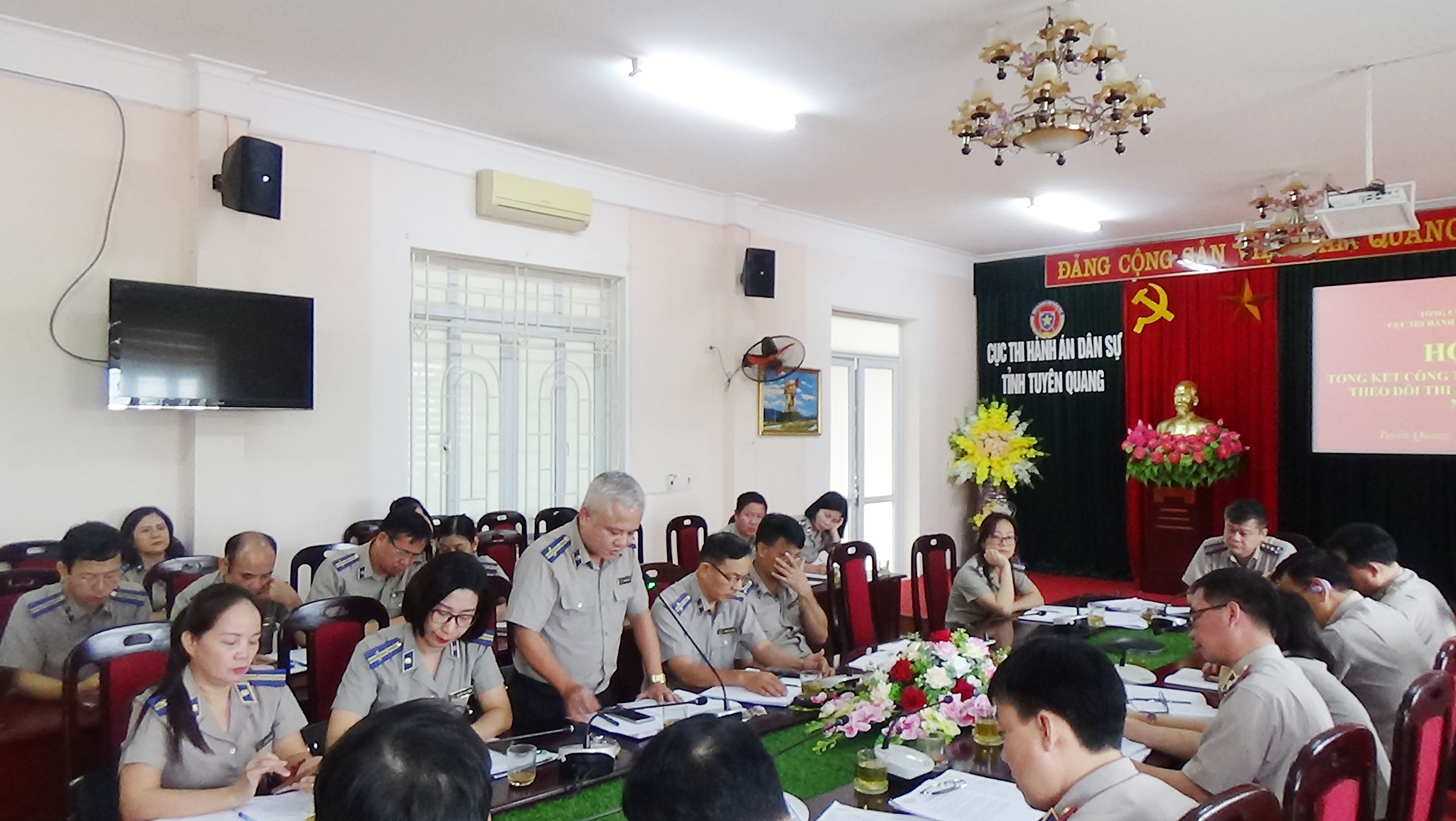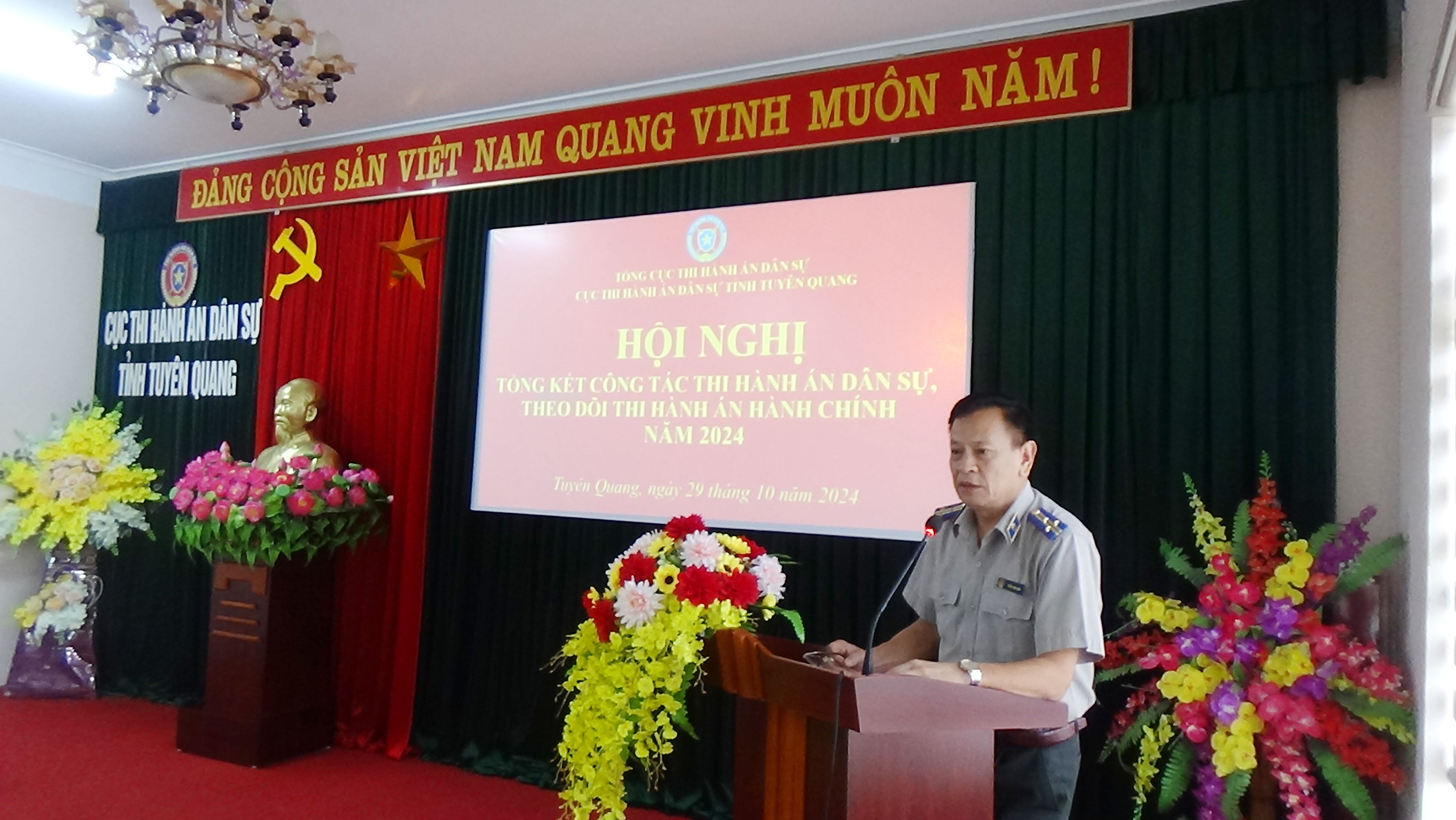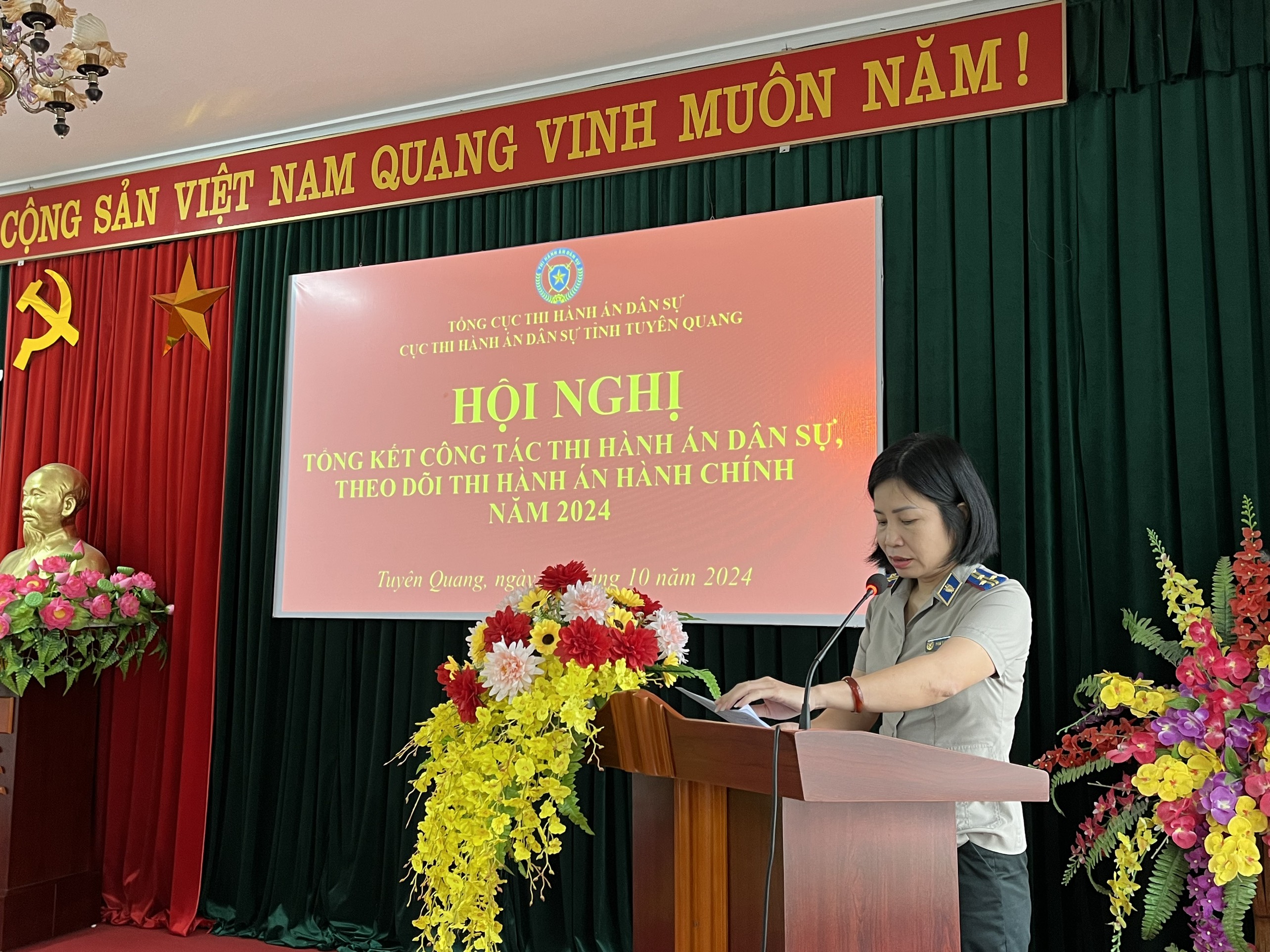 Theo báo cáo do lãnh đạo Văn phòng Cục trình bày tại hội nghị, năm 2024, là năm thứ tư thực hiện Nghị quyết Đại hội đại biểu toàn quốc lần thứ XIII của Đảng, Nghị quyết Đại hội đại biểu Đảng bộ tỉnh lần thứ XVII, trước bối cảnh tình hình kinh tế - xã hội cả nước nói chung, của Tuyên Quang nói riêng còn gặp nhiều khó khăn, đặc biệt trong tháng 9/2024 tỉnh Tuyên Quang bị ảnh hưởng lớn do cơn bão số 3 (YAGI) gây ra, song Cục THADS tỉnh và các Chi cục THADS trực thuộc đã chủ động xây dựng các chương trình, kế hoạch công tác của ngành, của đơn vị, bám sát sự lãnh, chỉ đạo của Bộ Tư pháp, Tổng cục THADS, Tỉnh uỷ và Uỷ ban nhân dân tỉnh để triển khai thực hiện toàn diện các mặt công tác.