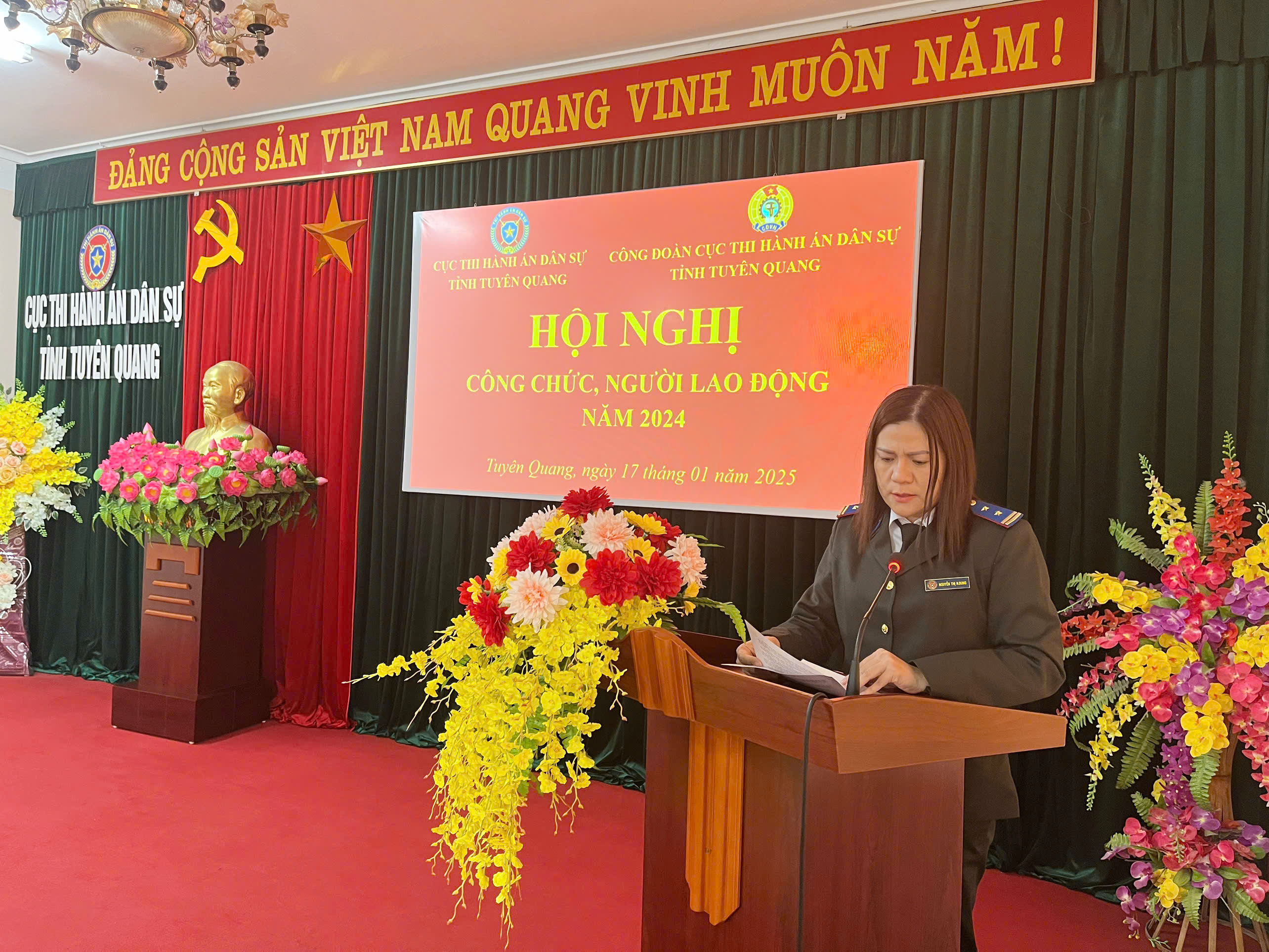 Kết luận hội nghị, đồng chí Nguyễn Tuyên, Cục trưởng đã biểu dương những kết quả đạt được của cơ quan, công đoàn và toàn thể công chức, người lao động của Cục trong năm 2024, góp phần vào thành tích chung của các cơ quan THADS của tỉnh. Đồng chí đề nghị toàn thể công chức, người lao động trong cơ quan tiếp tục phát huy những kết quả đã đạt được, tập trung chỉ đạo, triển khai thực hiện các nhiệm vụ, giải pháp trọng tâm theo kế hoạch công tác năm của Cục đã ban hành; nỗ lực khắc phục khó khăn, chủ động, sáng tạo trong công việc; tích cực chủ động nghiên cứu, học tập để nâng cao kiến thức chuyên môn, nghiệp vụ; phát huy hơn nữa tinh thần trách nhiệm, gương mẫu trong mọi hoạt động. Đối với công tác Công đoàn, trong thời gian tới cần có nhiều hoạt động thiết thực, thu hút được nhiều đoàn viên công đoàn tham gia; làm tốt công tác tuyên truyền giáo dục, chính trị; tích cực vận động công chức, người lao động tham gia có hiệu quả các phong trào thi đua yêu nước; quan tâm hơn nữa tới quyền và lợi ích của các đoàn viên, kịp thời thăm hỏi khi ốm đau, hiếu hỷ… và mong rằng, với sự đoàn kết, nhất trí của toàn thể đội ngũ công chức, người lao động cơ quan sẽ hoàn thành xuất sắc nhiệm vụ được giao năm 2025.